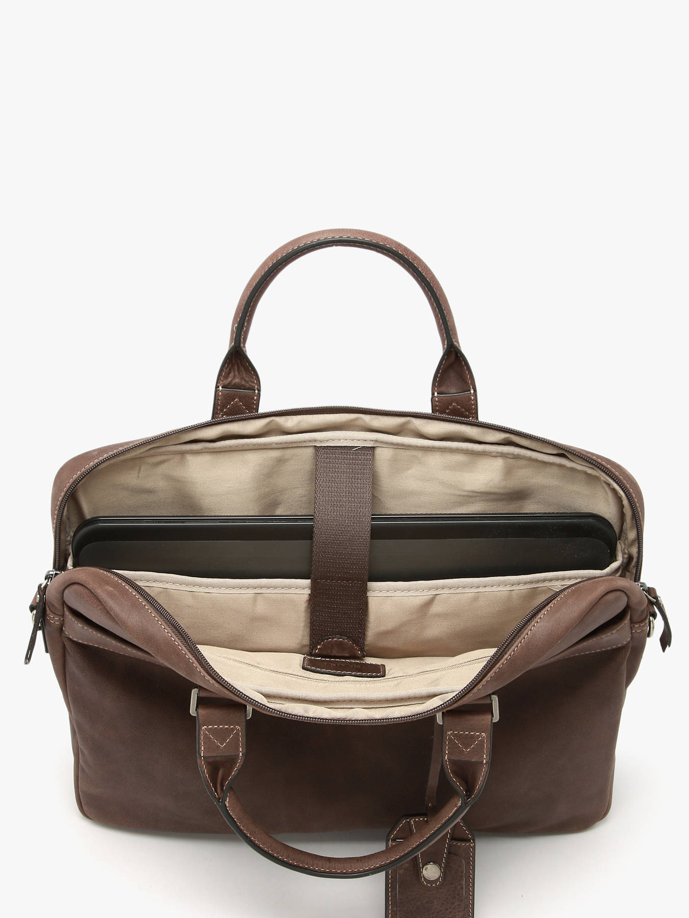 Gentlemen, don't hesitate any longer and be stylish when you go to work. Etrier offers you this superb briefcase from the Spider line, made of high quality leather. It has two outside pockets, a zipper on the top to secure your belongings and an adjustable and removable shoulder strap so you can carry it by hand or cross-body. Inside, you can easily slip your 15"" laptop, a notepad, an A4 file, your small items in the zipped pocket, etc. Your colleagues will be jealous of your splendid document holder.