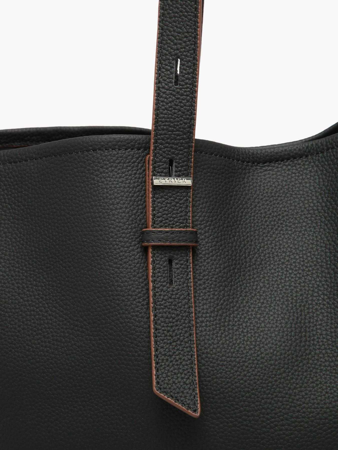 The CAVALIER tote bag by ETRIER is made from grained full-grain cowhide, offering both sturdiness and elegance. Its handles are adjustable thanks to a clever little detail, so you can customise the way you hold it. The bag closes securely with a magnetic snap, and its interior features a large detachable cotton pouch, ideal for protecting and organising your belongings. The modern logo, embossed on the leather, features the ETRIER letters for a discreet touch of sophistication. With its generous space, the bag can also carry A4 documents, combining practicality and style. A spacious, refined bag that's the perfect elegant accompaniment to your everyday life.