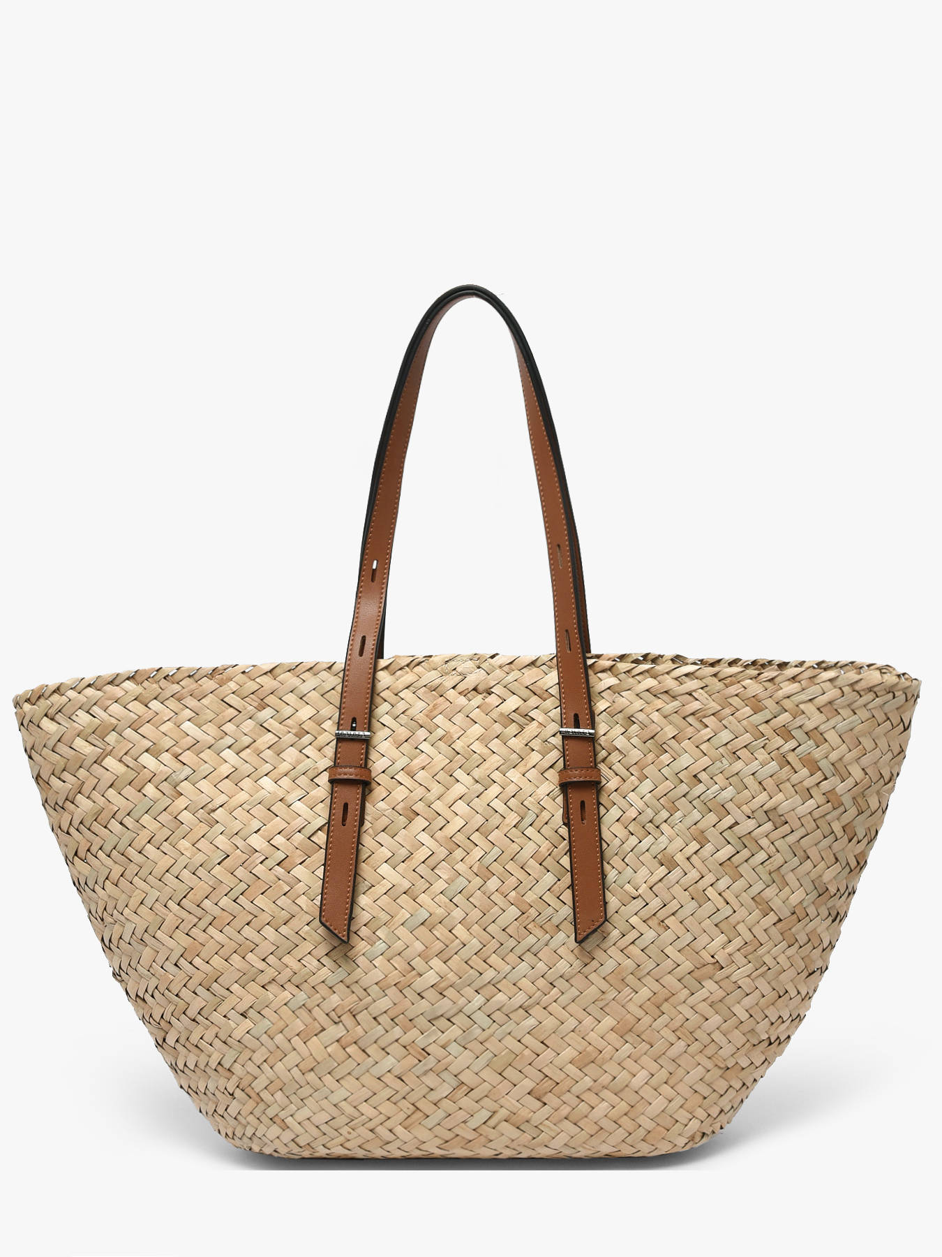 The ETRIER shoulder bag from the SHETLAND line reinvents the summer tote with elegance and modernity. Crafted from reed with leather detailing, it perfectly combines natural style and everyday practicality. Its spacious compartment closes with a magnetic snap, providing easy and secure access to your essentials. The shoulder strap is adjustable thanks to a slider system enhanced with ETRIER-engraved hardware, while the 22 cm handle ensures optimal comfort. The leather logo patch on the front of the tote adds a distinctive, authentic touch, making this bag a stylish companion for your summer looks.